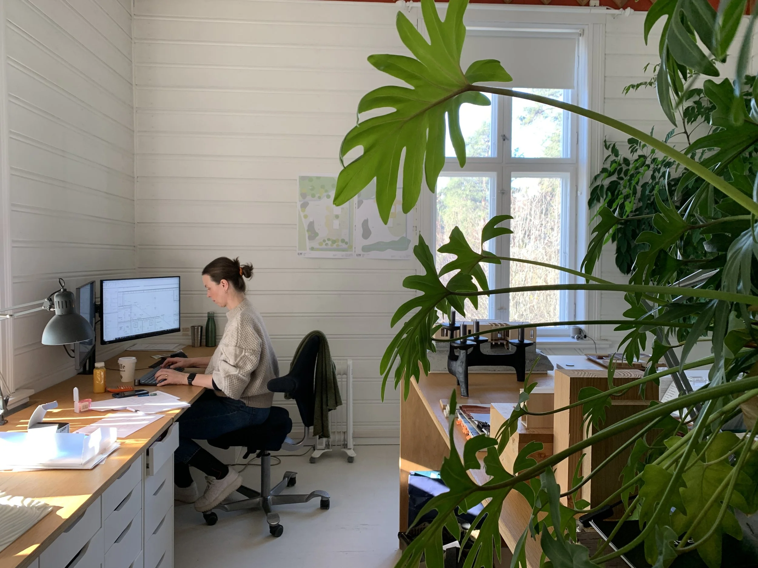 Eksempel på innredning hos arkitektbyrået LWA i 1. etasje i hovedhuset.